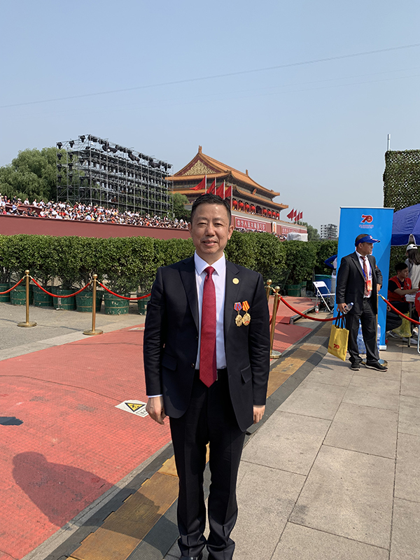 Zhou Haijiang said that this time, as a representative of private entrepreneurs and a secretary from a grass-roots party organization, I was awarded the "Medal of Celebration of the 70th Anniversary of the Founding of the People's Republic of China" by the Central Committee of the Communist Party of China, the State Council and the Central Military Commission, and was invited to attend the 70th National Day Literary Gala held at the Great Hall of the People in Beijing in September 29, and Today I was again on the Tiananmen Observatory, which is the greatest glory and the most memorable moment in my life.