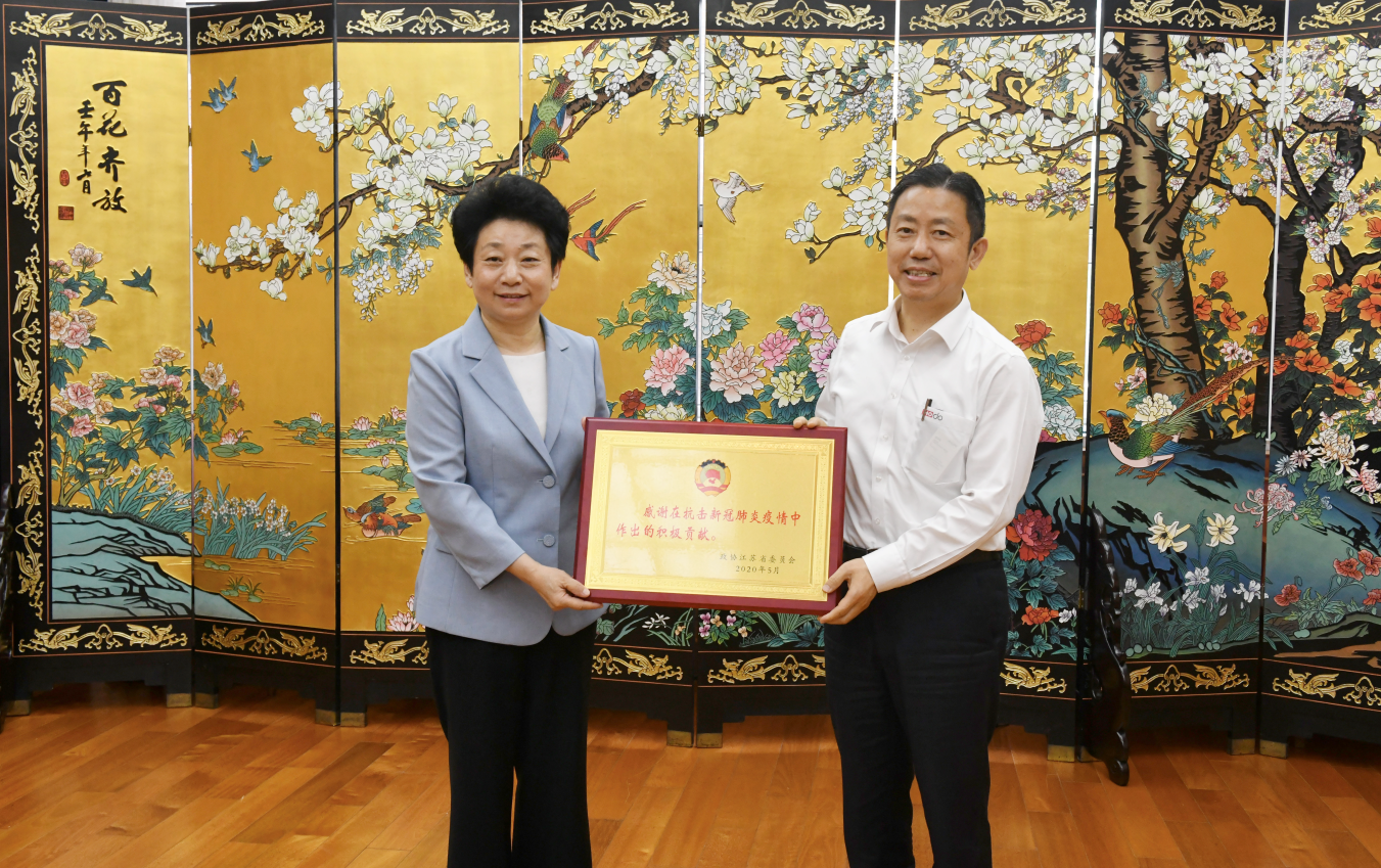 On June 17, Zhou Haijiang, Chairman and CEO of HOdo Group and member of the Standing Committee of the Provincial Committee of the Chinese People’s Political Consultative Conference, was awarded by the CPPCC Jiangsu Province for adhering to the leadership of party building, actively participating in the fight against the epidemic, fulfilling its mission, and making outstanding contributions in the fight against the COVID-19. Huang Lixin, chairman of the Provincial Committee of the Chinese People's Political Consultative Conference, awarded honorary plates to the commended collectives and individuals.