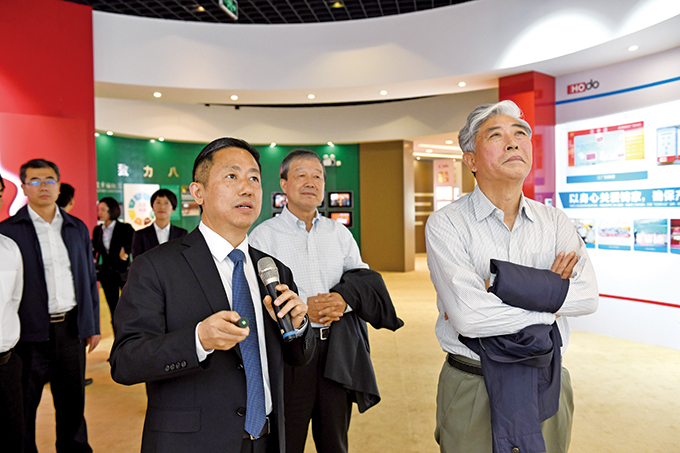 在紅豆黨建館,紅豆集團(tuán)黨委書記、董事局主席兼CEO周海江介紹了紅豆創(chuàng)立的現(xiàn)代企業(yè)制度+企業(yè)黨建+社會(huì)責(zé)任“三位一體”的中國(guó)特色現(xiàn)代企業(yè)制度、主題教育開展、企業(yè)發(fā)展等情況。周海江說,企業(yè)健康發(fā)展、企業(yè)人士健康成長(zhǎng),這是黨和國(guó)家對(duì)民營(yíng)企業(yè)的基本要求,也是廣大民營(yíng)企業(yè)的內(nèi)在要求。紅豆集團(tuán)始終堅(jiān)持黨建引領(lǐng)企業(yè)治理,將黨的政治優(yōu)勢(shì)轉(zhuǎn)化為企業(yè)發(fā)展優(yōu)勢(shì),始終堅(jiān)持“聽黨話、跟黨走,講正氣、走正道”,始終堅(jiān)持“以人民為中心”的發(fā)展理念,不忘初心、牢記使命,致富鄉(xiāng)親、造福社會(huì),實(shí)業(yè)報(bào)國(guó)、八方共贏。
