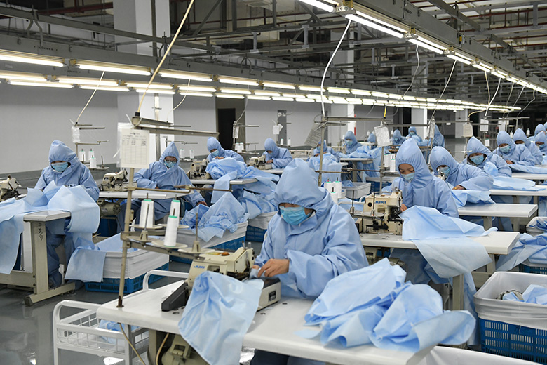 2月5日下午,走進(jìn)紅豆股份新建成的西服車間,只見(jiàn)一派熱火朝天的繁忙景象。面對(duì)疫情,這個(gè)新車間一夜之間被改造成的防護(hù)服生產(chǎn)車間,200多名工人戴著口罩,正在加緊趕制防護(hù)服?!胺雷o(hù)服是緊缺的醫(yī)療物資。為了支援抗疫前線,我們2月1日啟動(dòng)了防護(hù)服生產(chǎn)。”紅豆股份常務(wù)副總經(jīng)理顧金龍介紹,起初,大家心里都沒(méi)底,畢竟沒(méi)涉足過(guò)這個(gè)領(lǐng)域。但紅豆股份有成熟的服裝生產(chǎn)技術(shù),為一般防護(hù)服實(shí)現(xiàn)快速生產(chǎn)創(chuàng)造了有利條件。