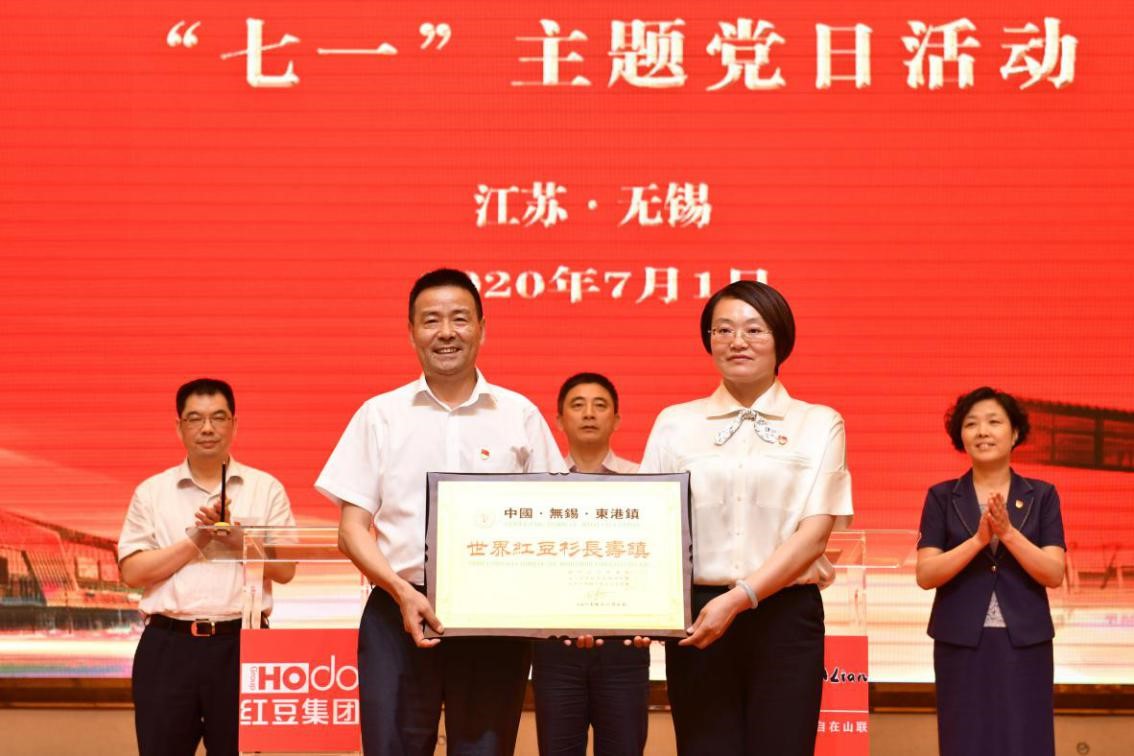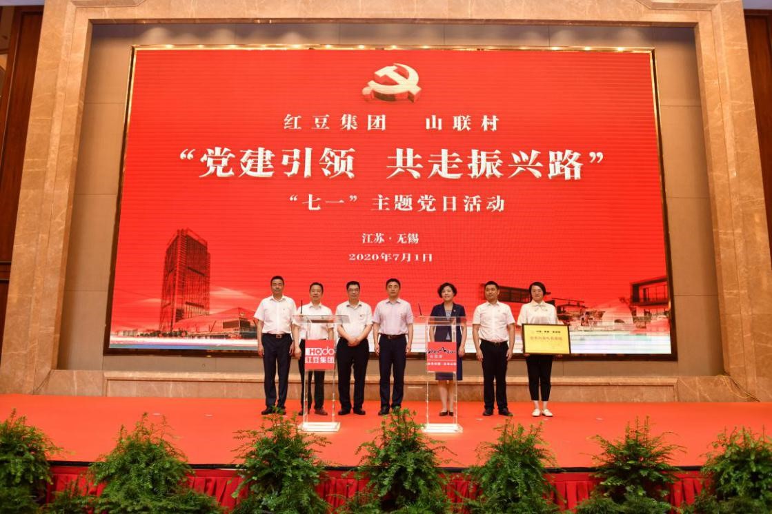 村企聯(lián)姻一家親,攜手共進(jìn)助振興。 7月1日下午,紅豆集團(tuán)、山聯(lián)村“黨建引領(lǐng)共走振興路”“七一”主題黨日活動(dòng)在紅豆杉莊舉行?;顒?dòng)上,紅豆集團(tuán)與山聯(lián)村深化結(jié)對(duì)共建正式簽約;為推動(dòng)山聯(lián)村休閑、度假、康養(yǎng)產(chǎn)業(yè)發(fā)展,帶動(dòng)百姓致富,紅豆集團(tuán)還將“世界紅豆杉長(zhǎng)壽鎮(zhèn)”品牌使用權(quán)授予山聯(lián)村。
